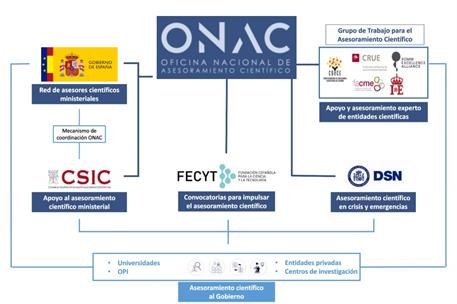 El Sistema de Seguridad Nacional también está trabajando en el desarrollo del Catálogo de Recursos para la Seguridad Nacional trabajo al que también se ha incorporado la Oficina Nacional de Asesoramiento Científico y los distintos mecanismos que esta ha desplegado, como la red de asesores científicos ministeriales y la Unidad de Asesoramiento Científico en el CSIC. Esta medida reconoce el valor estratégico de las capacidades analíticas, prospectivas y preventivas desarrolladas por la ONAC, y consolida el papel del asesoramiento científico como recurso esencial en la gestión de crisis.